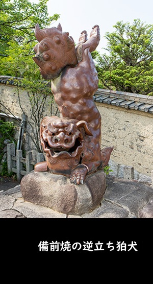 3️⃣:「見どころ」→「 備前焼の逆立ち狛犬」、